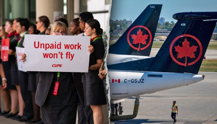 The Canadian Union of Public Employees, representing more than 10,000 flight attendants, said its members are currently paid only when the aircraft is moving from pushback to arrival and that they receive no pay for time spent boarding passengers, helping them deplane or waiting on the ground between flights.