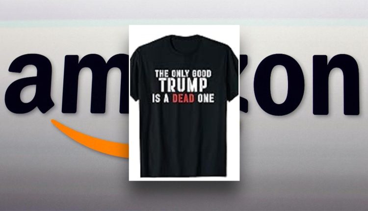 A seller on Amazon’s website had a shirt for sale this week, bearing the phrase, “The Only Good Trump Is a Dead One,” but it has since been removed from the site.