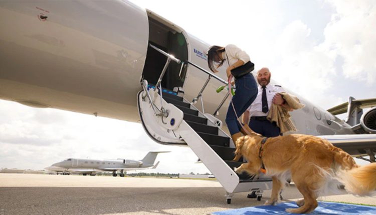 What’s included? A concierge, “efficient check-in process” 45 to 60 minutes before takeoff sans crates, TSA checkpoints or screening. It features socialization with other dogs onboard, meals for the human companion and calming items such as treats, noise-canceling ear muffs, and jackets to help dogs have a “stress-free and enjoyable flight.”