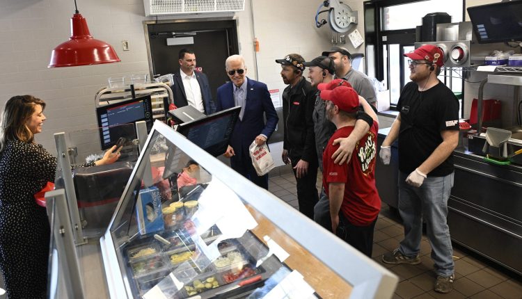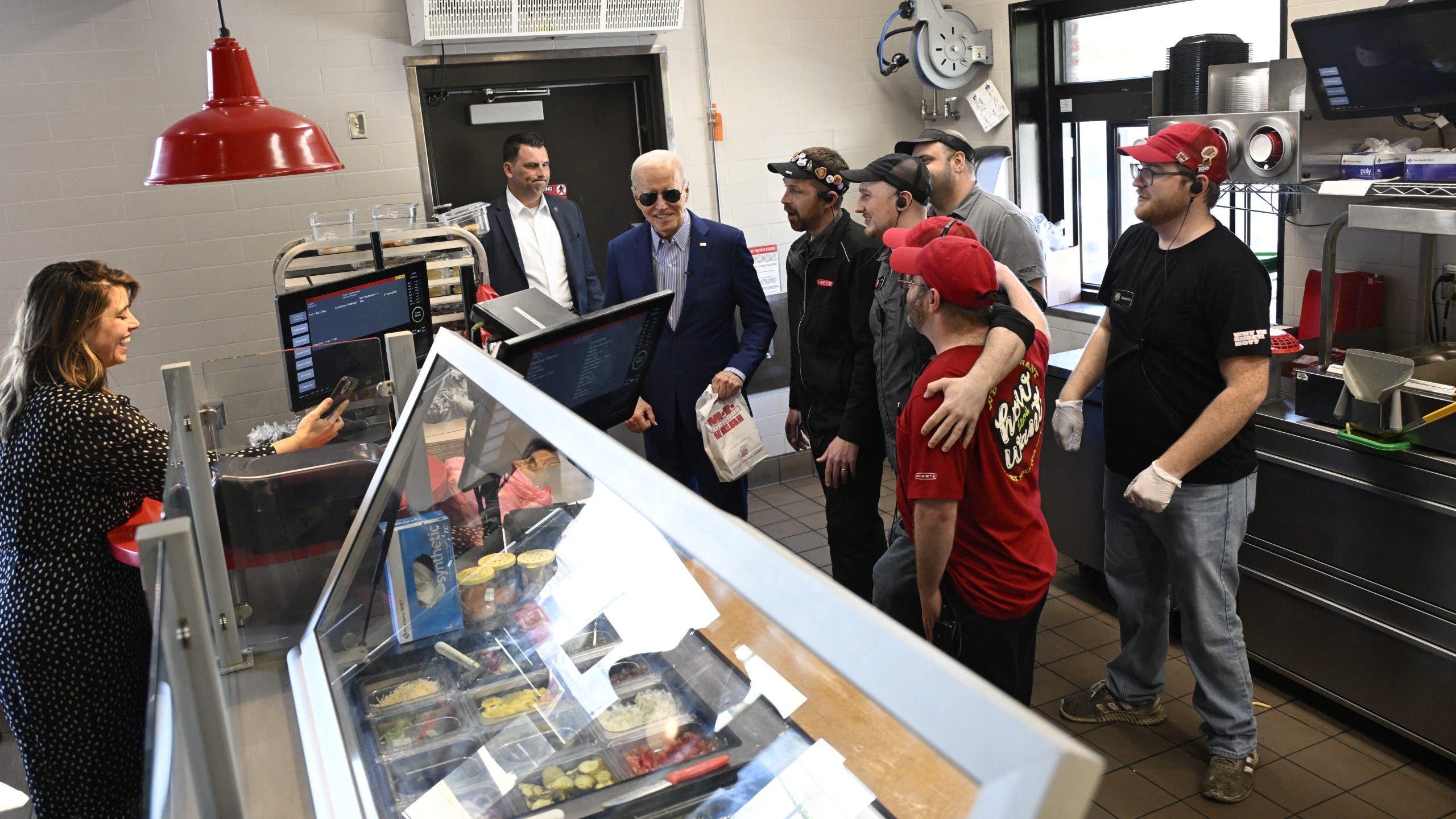 The lawsuit was filed the same day Biden cheerfully stopped by a Pittsburgh location on Wednesday for food. Former President Trump stopped by a New York City bodega the day before.