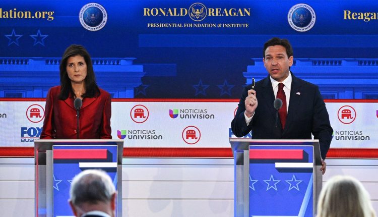 DeSantis appeared to laugh during Haley’s remarks before rejecting that he opposed fracking or drilling on federal lands.