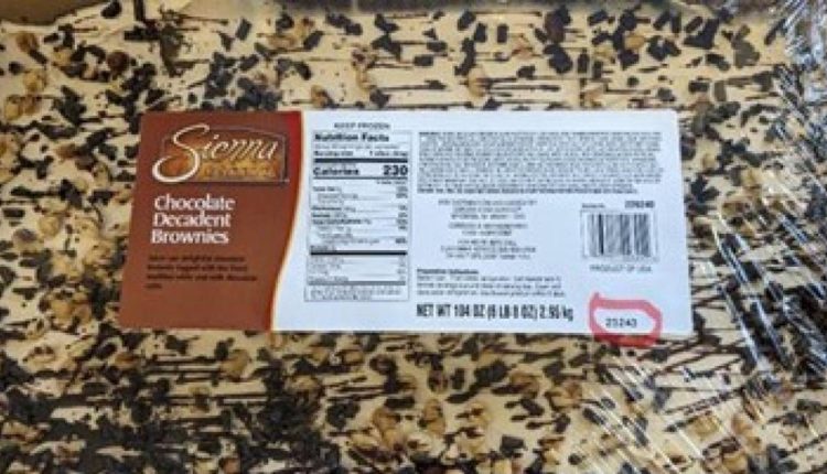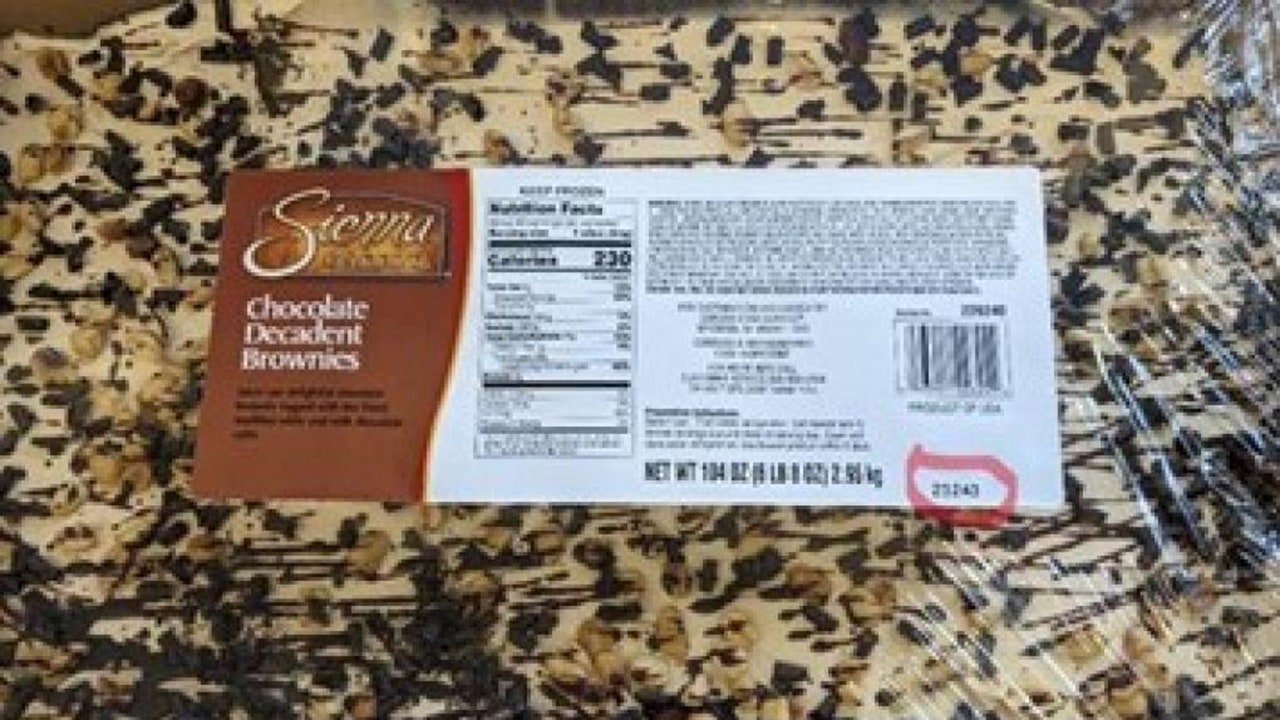 The 512 cases of recalled products include trays of Item #226240 Sienna Bakery Chocolate Decadent Brownies with a lot code of 23243 or master cases of GFS Item# 226260 Sienna Bakery Chocolate Peanut Butter Brownies, lot# 6Z3H31 or 23243.
