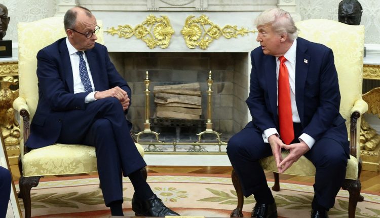 German Chancellor Friedrich Merz said President Donald Trump’s tariffs are threatening his economy, adding that he believes free trade and open markets are “the best thing for mutual wealth” during a visit to the United States on Thursday.