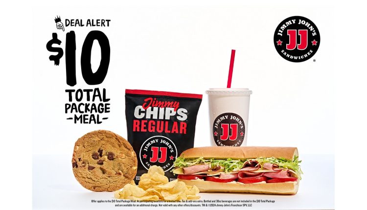 Jimmy John’s customers can get an 8-inch Original sandwich, a bag of kettle cooked Jimmy Chips plus a dessert and a regular-sized fountain drink when they order the $10 Total Package Meal, according to the Inspire Brands-owned chain.