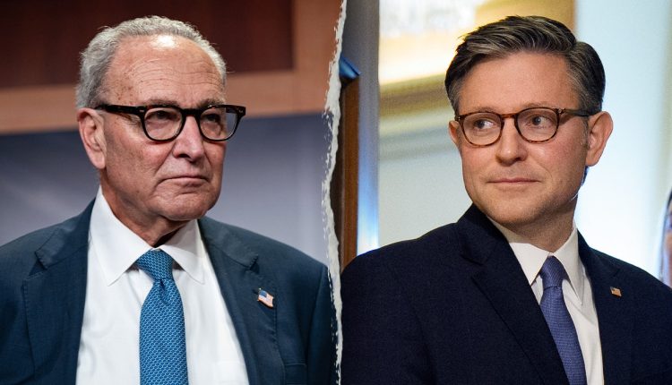 The House speaker accused Schumer and House Minority Leader Hakeem Jeffries (D-N.Y.) of taking “a partisan political stand for their own purposes” after the duo failed to bring “credible” arguments to their meeting with President Trump.