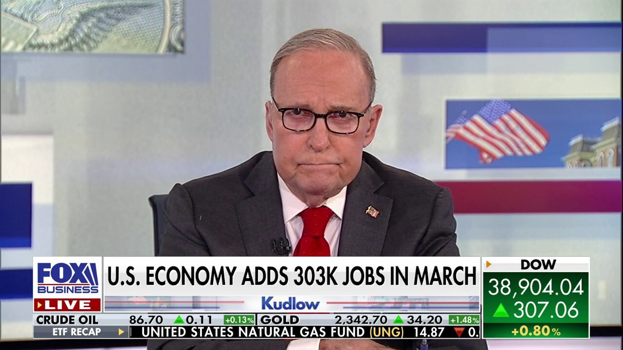People don’t want government bureaucrats to tell them how to live or what they can or cannot buy. This country loves freedom, not big-government statism. The country loves consumer choice as a big part of their freedom. As for the March jobs numbers, the topline print says 303,000.