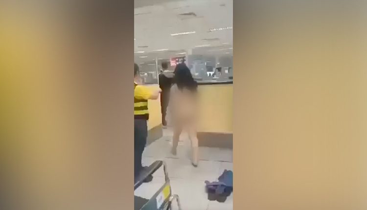 A Vietnamese tourist was caught on camera walking through Ninoy Aquino International Airport (NAIA) security naked after police sought payment from her for overstaying her visa.