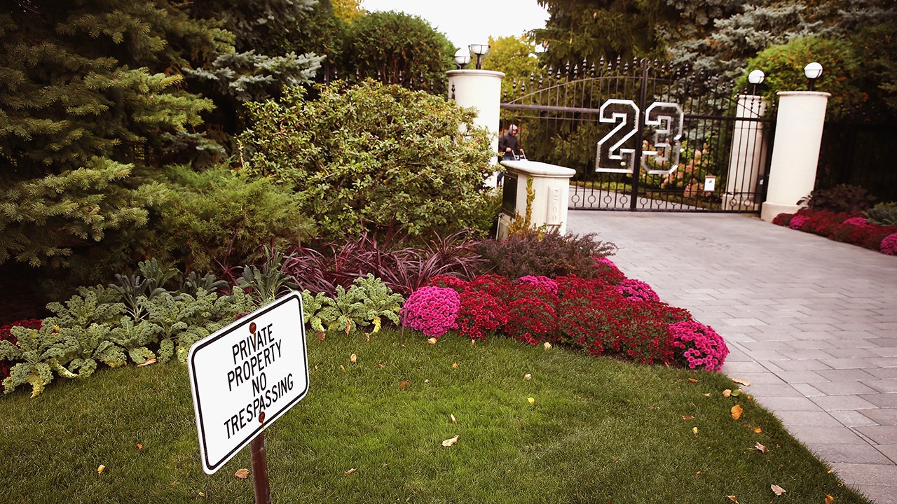 The entrance to the property sits behind a gate with a large “23.” That number is closely associated with Jordan and his NBA career.