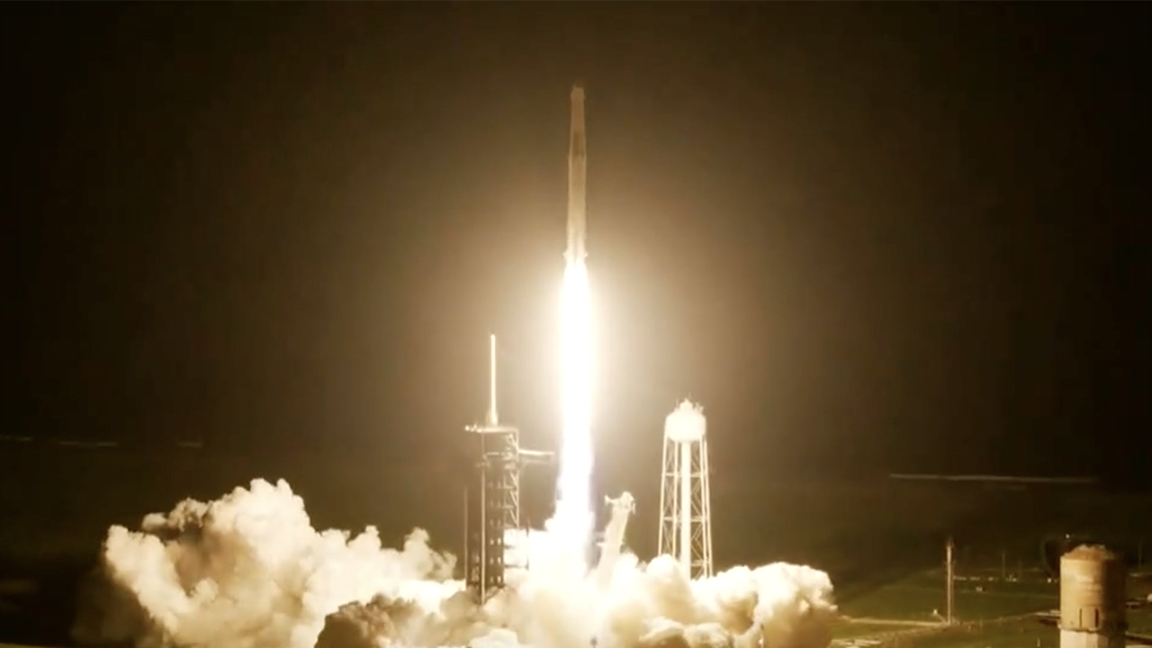 The crew aboard a Dragon capsule and Falcon 9 rocket were launched from pad 39A at 5:23 a.m., pushed back from the earlier scheduled liftoff time of 3:38 a.m. due to weather conditions.