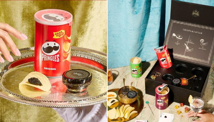 The third and final tier of the collection includes a flight of Pringles a caviar, “Pringles x The Caviar Co. Crisps and Caviar Flight.”