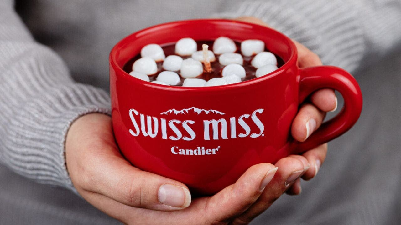 The candles were poured into the classic Swiss Miss red mug, complete with wax “mini marshmallows” on top. According to a press release from Conagra, the scent has notes of chocolate, vanilla, hazelnut, sugar and praline, and the candles have a burn time of at least 60 hours.