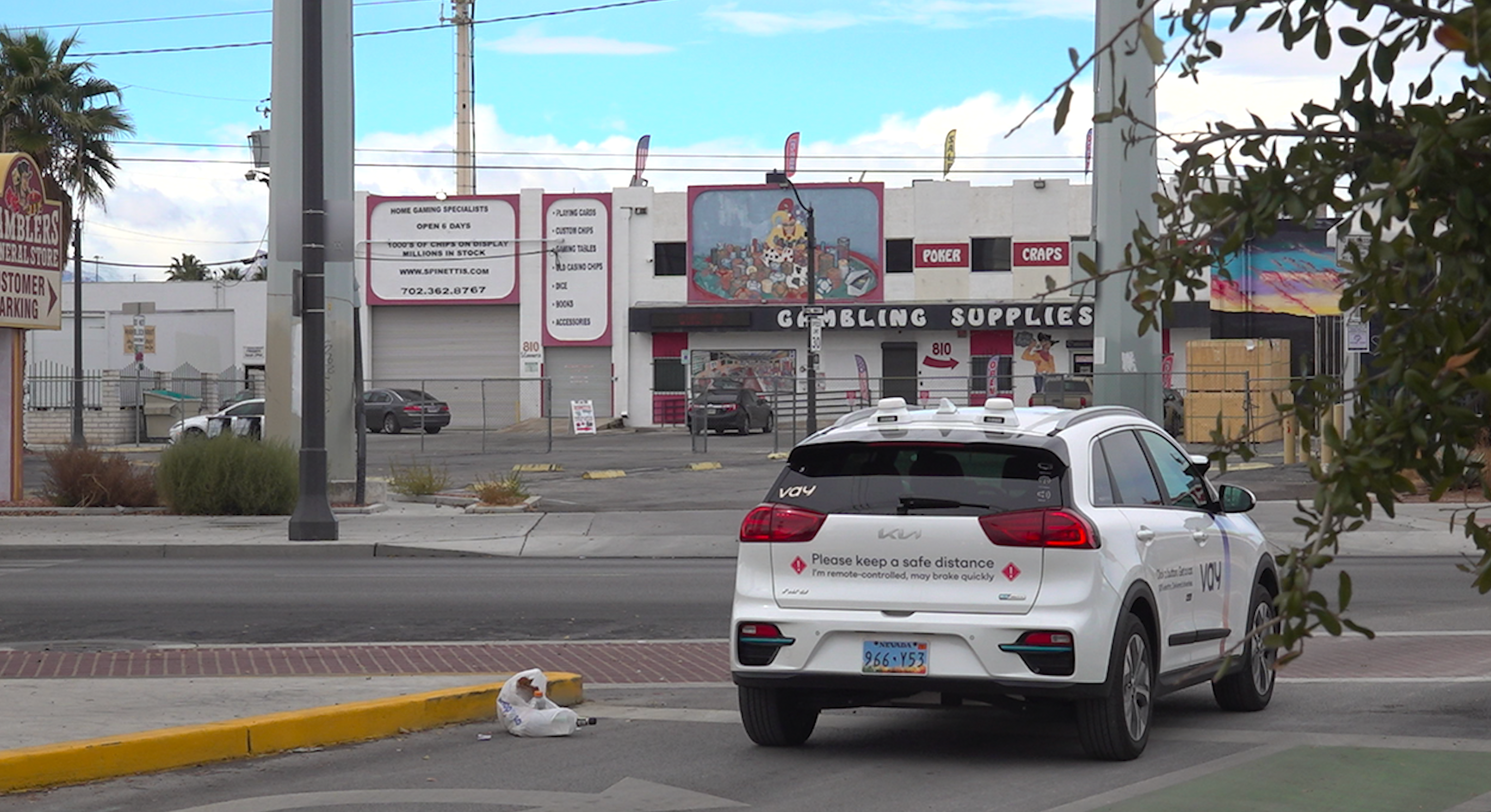 In Las Vegas, you can now see cars on the road without a driver behind the wheel. They are not self-driving cars, but rather, remote-driven cars.