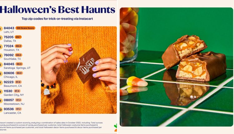 “For the first time ever, we’re introducing a tool that lets you enter your zip code to discover your area’s ‘Scare Score.’ This score, determined by analyzing candy, costume, and decor purchases via Instacart, rates your community’s Halloween spirit — and shows the top candies in your zip code, so you know which treats your neighbors are most likely going to be handing out,” Laurentia Romaniuk, Instacart’s trends expert, said in a company blog post.