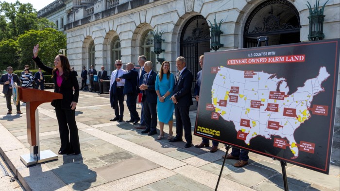 US agriculture secretary Brooke Rollins on Tuesday said the administration would work with state and local governments to take “swift legislative and executive action to ban the purchase of American farmland by Chinese nationals and other foreign adversaries”.