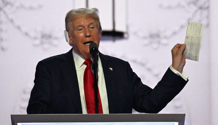 “I am very proud to say that over the past few days we’ve raised $6.3 million for the families of David, James and Corey, including from a friend of mine… Right here, I just got it, $1 million,” Trump said, holding up a check. “From Dan Newlin, thank you, Dan.”