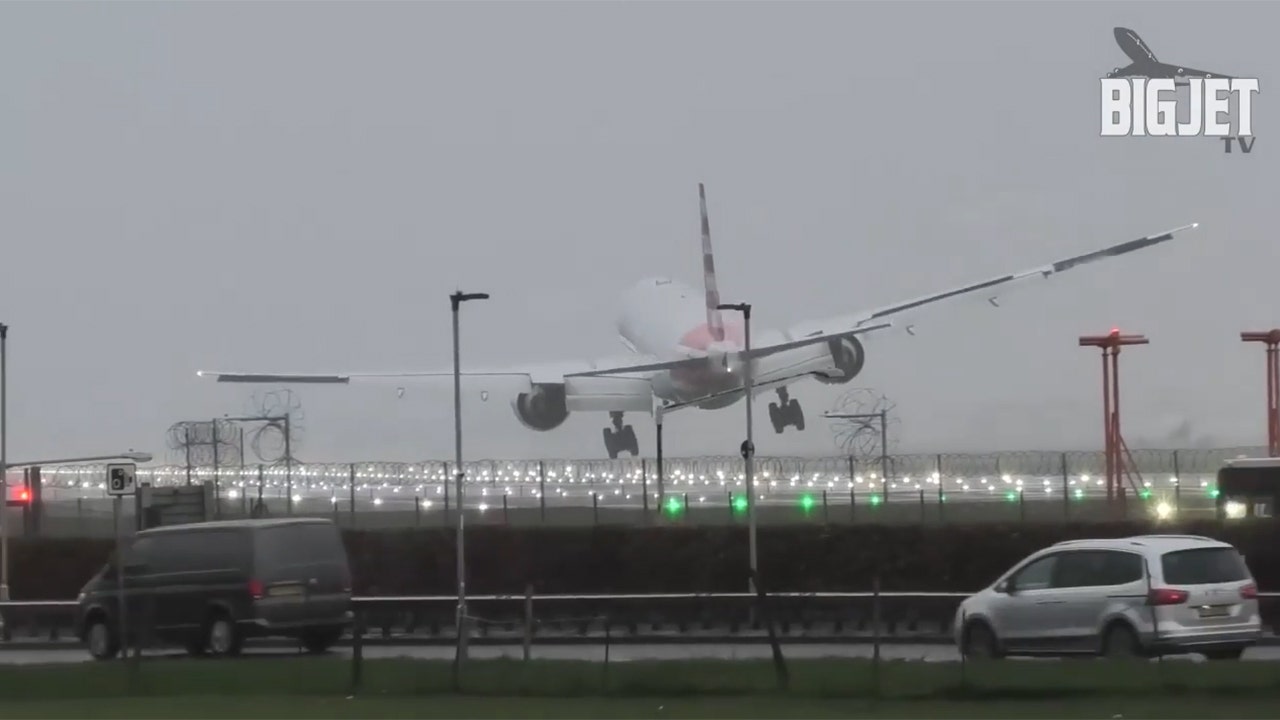 Video shows the moment a Boeing 777 operated by American Airlines encountered crosswinds as it made a hard landing at London Heathrow Airport during Storm Gerrit on Wednesday.