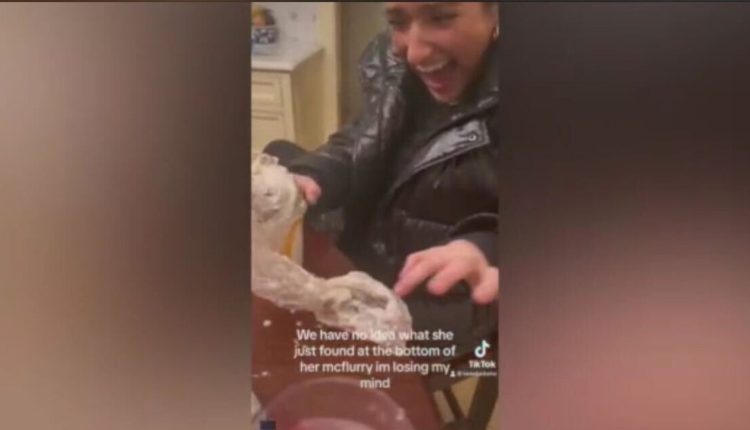 In Kellie Ulmer’s TikTok post, which has garnered nearly 2 million views, she is seen reacting to the nauseating sight of pulling out a McFlurry-covered trash bag.