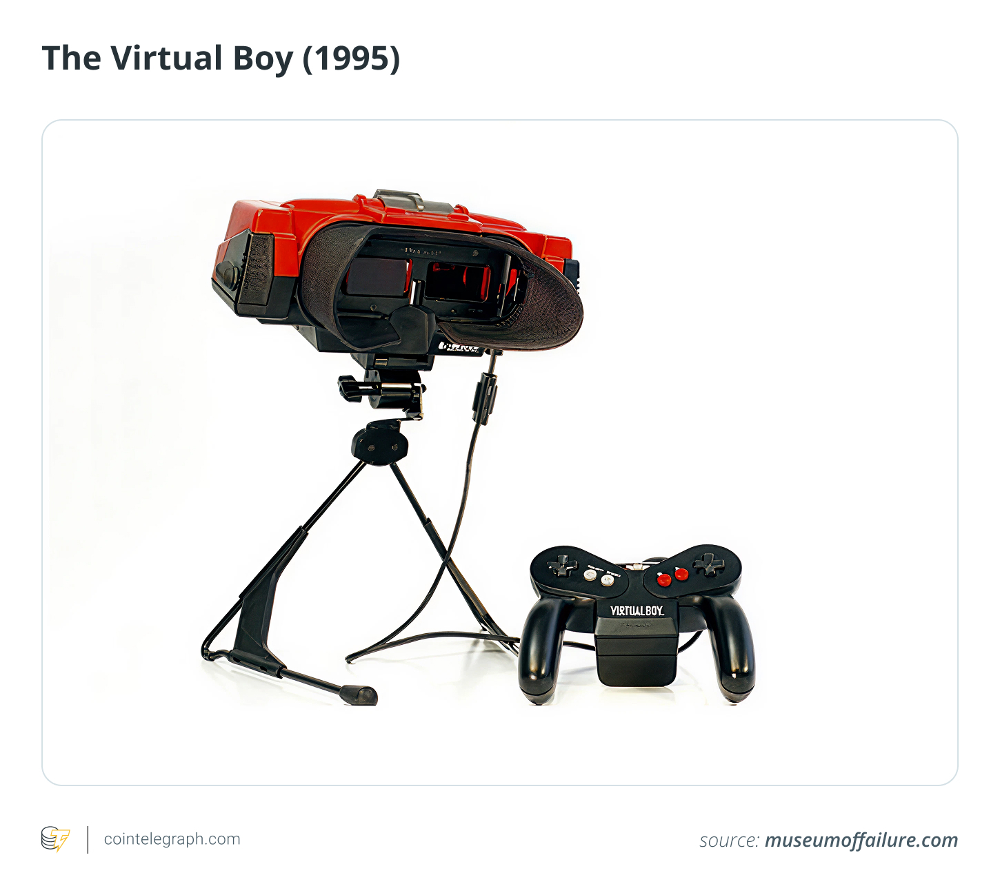 The Virtual Boy (1995) was Nintendo’s early stab at 3D gaming, using red-on-black stereoscopic displays. Unfortunately, it had poor ergonomics, a limited library of just 22 games and caused eye strain and headaches. It was discontinued within a year.