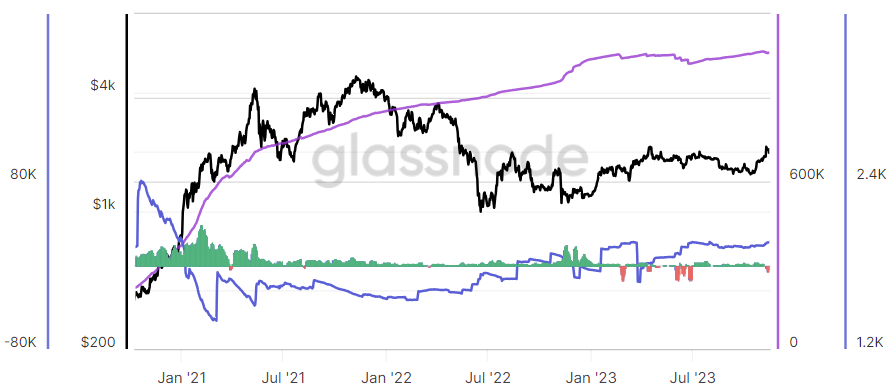 The number of non-zero addresses is a good indicator of the number of people who are actively participating in crypto. When the number of non-zero addresses increases, it suggests that there is increasing demand, which can be a sign of a bull market.