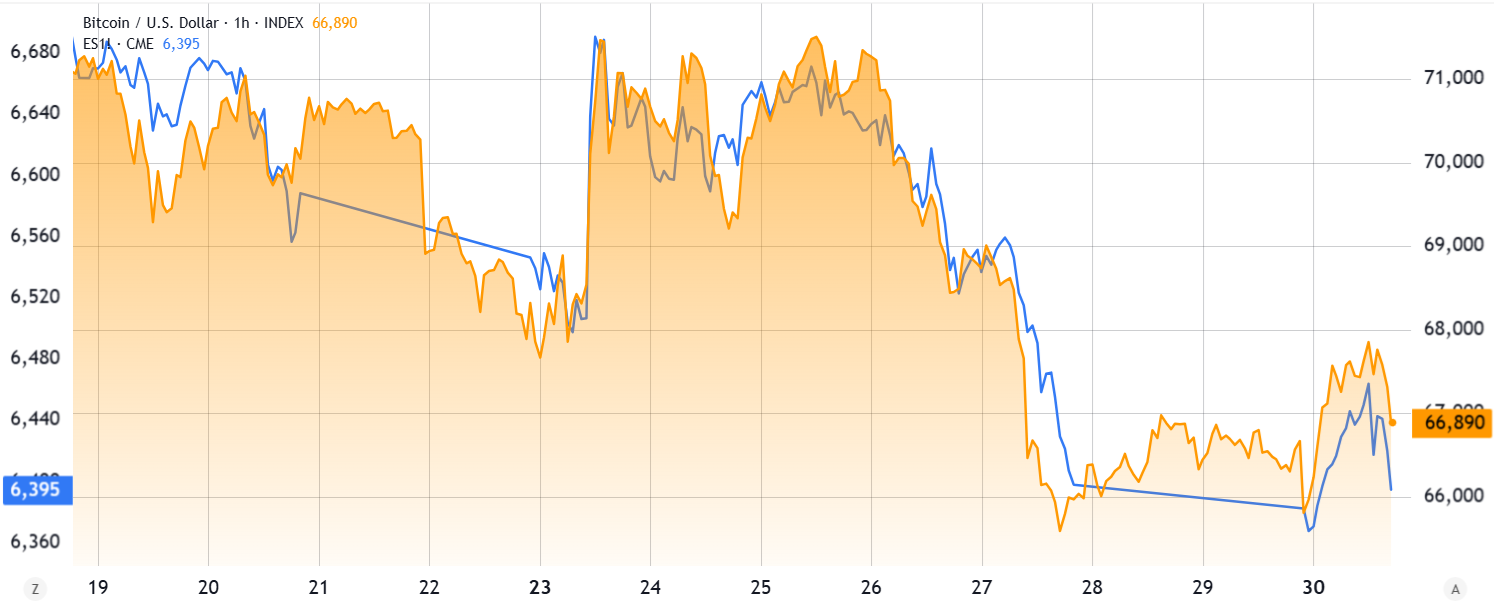 Bitcoin (BTC) price recovered from Sunday’s $65,000 low but failed to hold ground above $67,000 on Monday, tracking the modest intraday losses seen in the S&P 500 Index. Despite initial decoupling signs favoring Bitcoin, a whale recently opened a massive $53 million BTC short position on Hyperliquid.