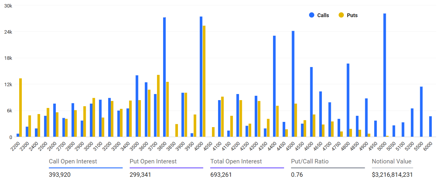 Between $4,850 and $5,200: $1.82 billion calls vs. $2 million puts, favoring calls by $1.8 billion.