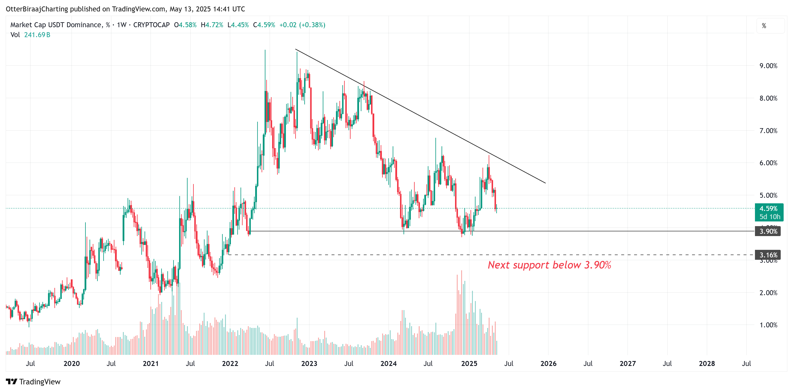 USDT dominance could dip to new lows