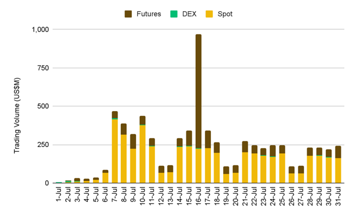 Tokenized stocks are also gaining momentum, reaching a total market capitalization of $370 million by the end of July, representing a 220% increase in just one month, according to Binance Research.