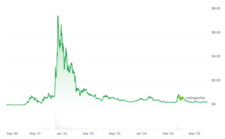 The Sandbox (SAND) price chart since 2020. Source: CoinGecko