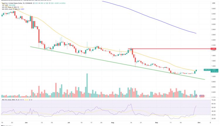 This makes APE one of the best-performing cryptocurrencies of the past few days, with the governance token starting to compensate for the steep losses it has incurred over much of 2023.