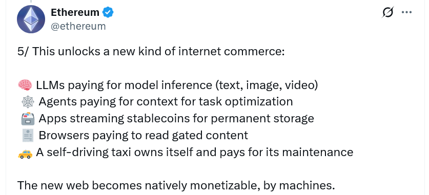 “They need atomic payments, programmable policies, and composable wallets. Ethereum and stablecoins give them exactly that.”