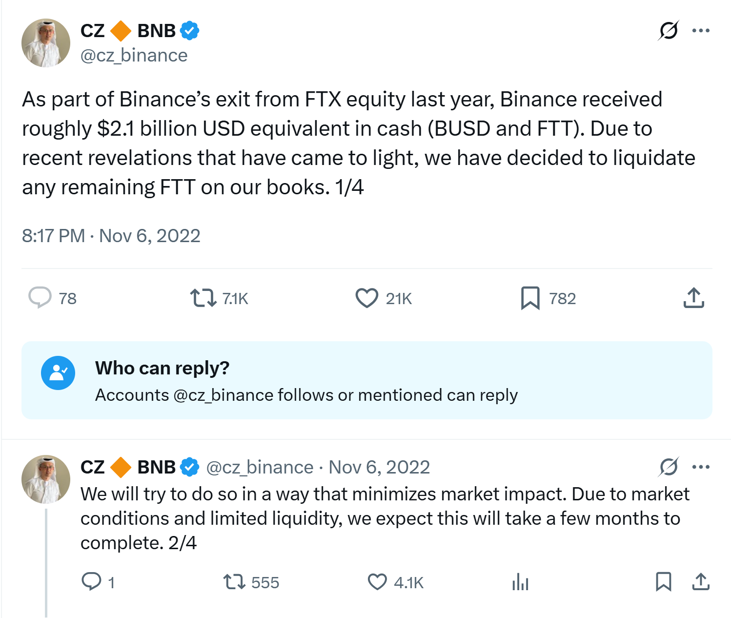 In response, Binance argued that Zhao’s tweet was based on publicly known concerns. “Binance’s decision to liquidate its remaining FTT was, in fact, ‘due to recent revelations ’— in particular, the Nov. 2, 2022, CoinDesk article” that exposed Alameda Research’s balance sheet.