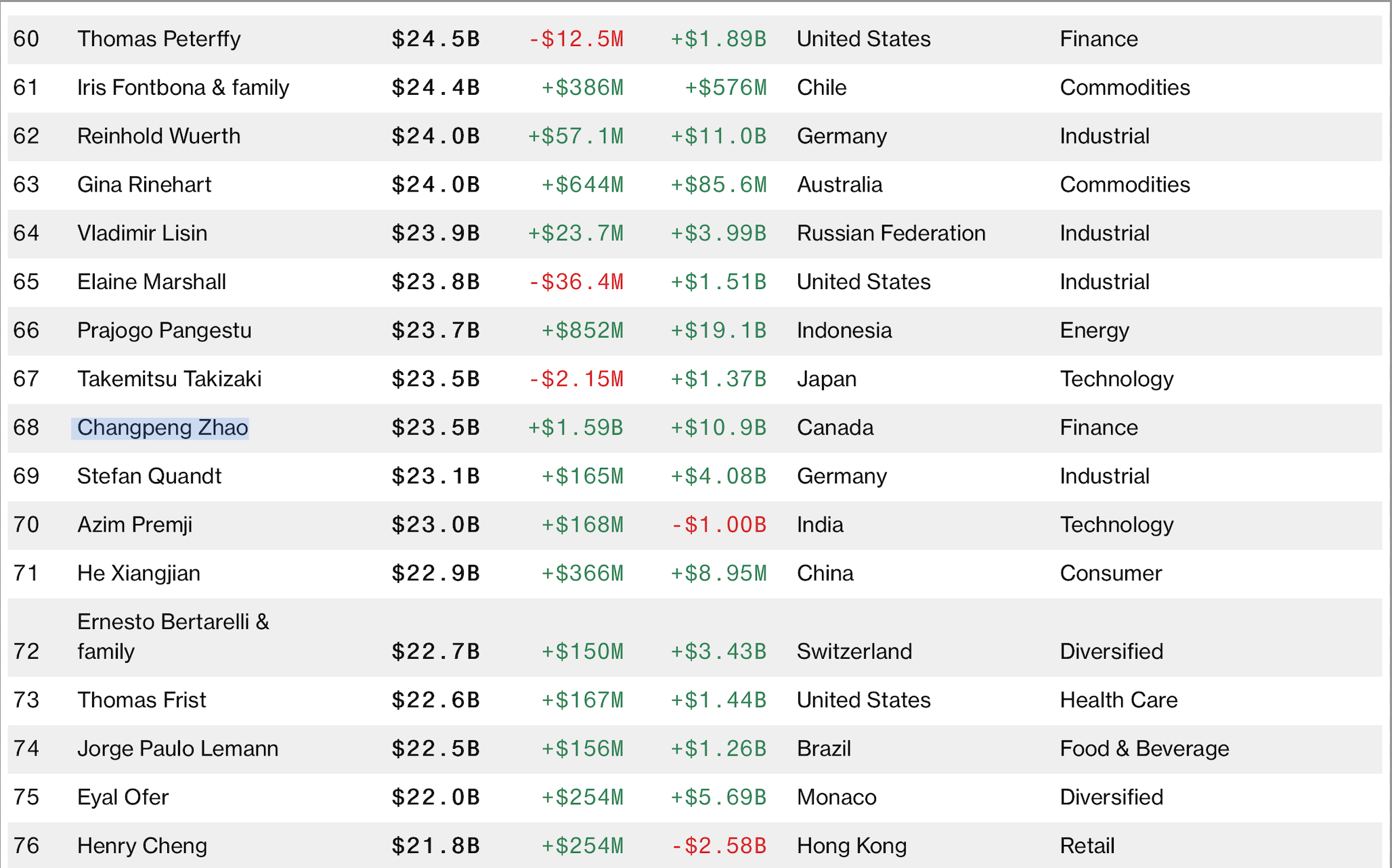 The Bloomberg Billionaires Index dropped Zhao from 11th place among the richest people in the world to a somewhat more modest 95th. His personal wealth was said to have been reduced from $96.9 billion to $17.3 billion. His standing had risen to 68th place in the November list, however.