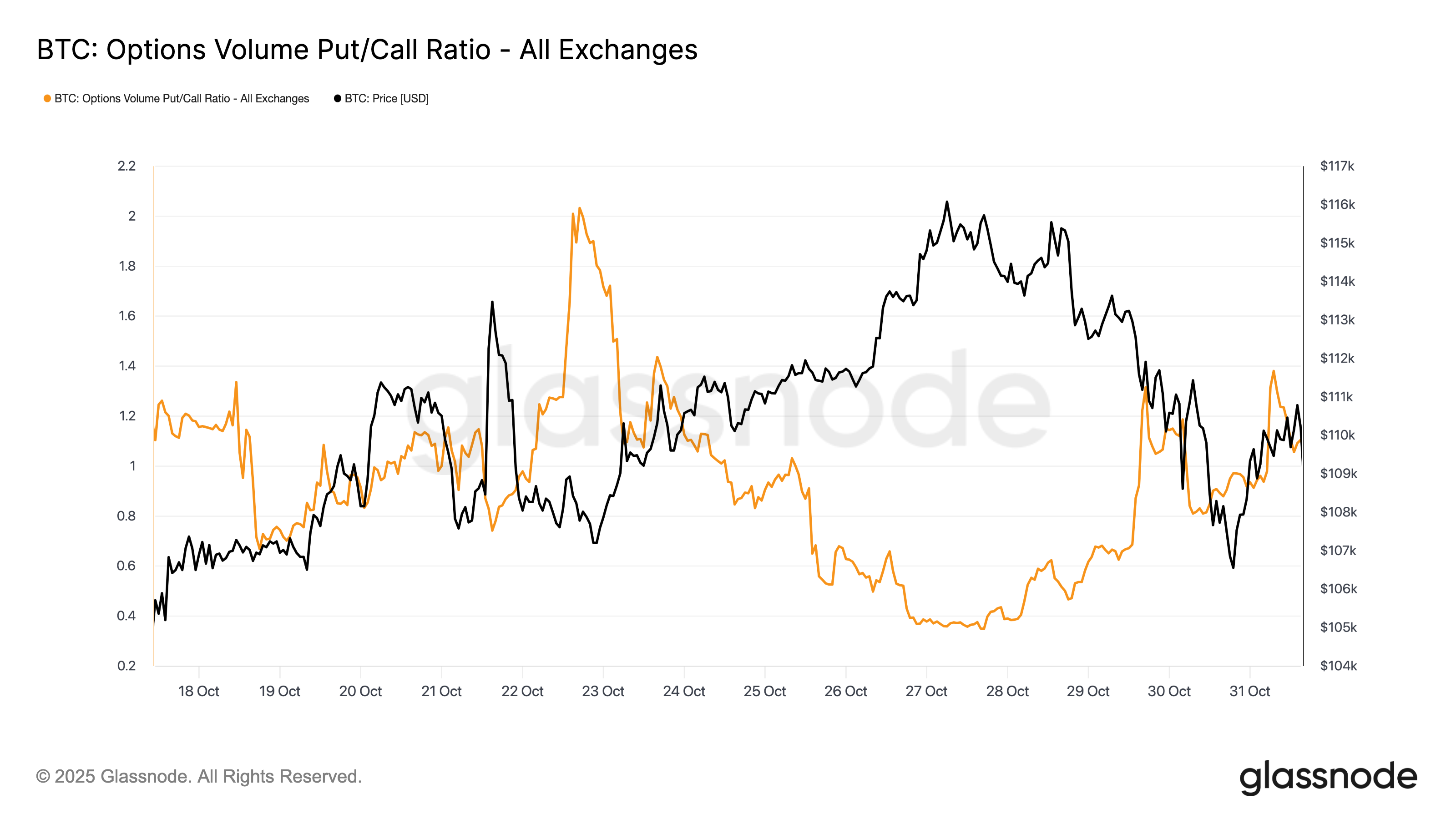 “Put–call volumes show little trust in a bottom. Put activity surged during the drop, then calls spiked as traders played the rebound near $100k,” it wrote in an X thread.