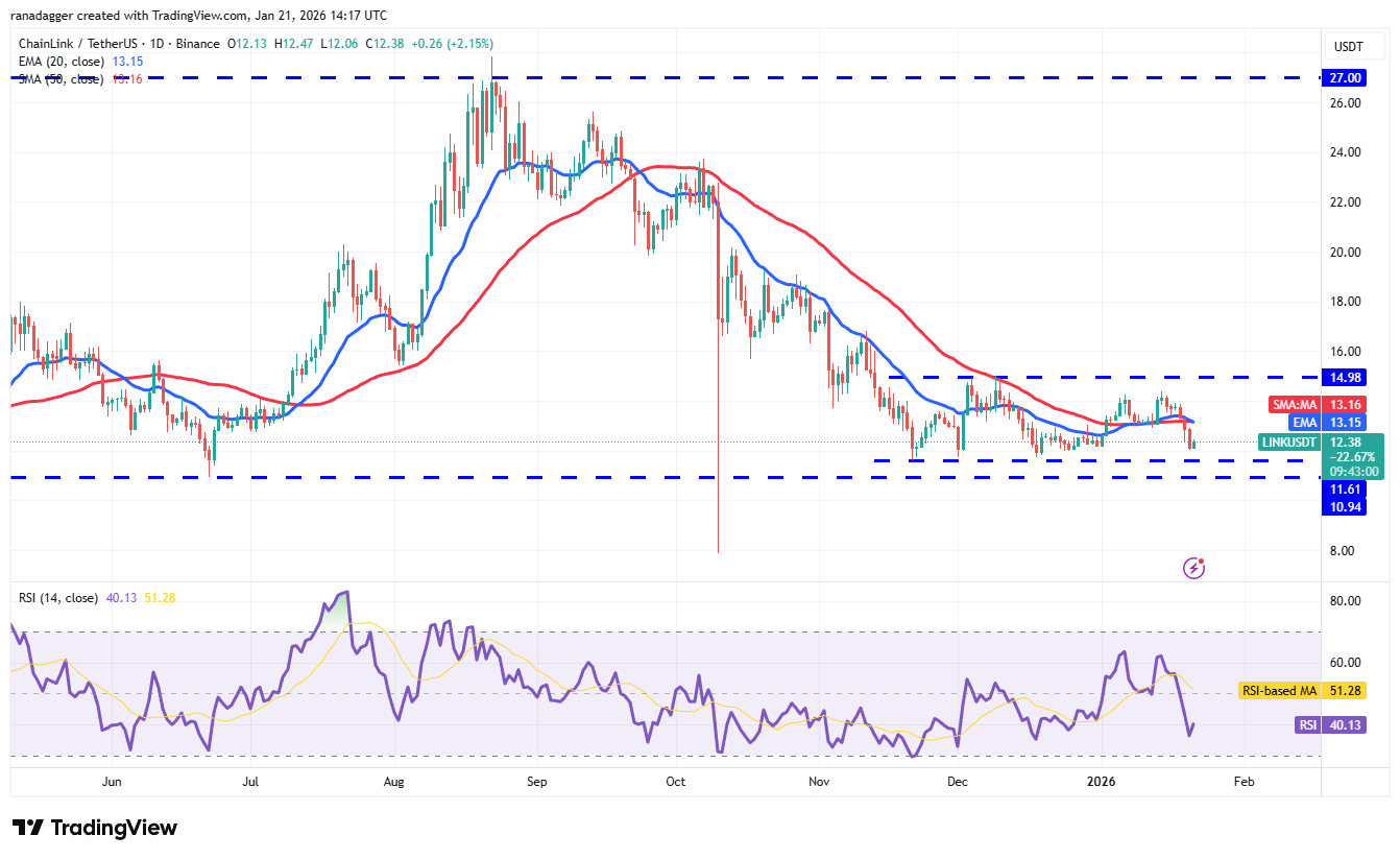 The relief rally is likely to face selling at the 20-day EMA ($0.13). If the price turns down sharply from the 20-day EMA, the risk of a break below the $0.12 support increases. The DOGE/USDT pair may then retest the Oct. 10 low of $0.10.