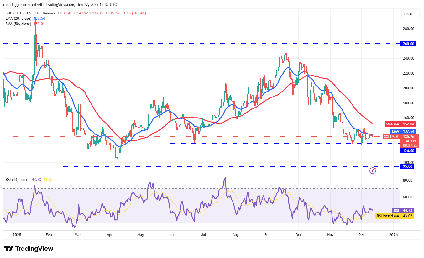 The long tail on Solana’s (SOL) Thursday candlestick shows that the bulls are aggressively defending the $126 level.