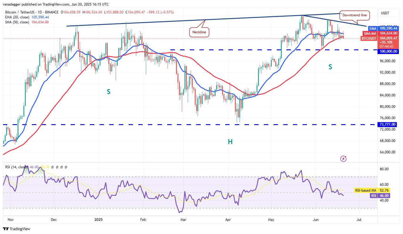 Bitcoin rebounded off the 50-day simple moving average ($104,634) on Friday and rose above the 20-day exponential moving average ($105,590). However, the bulls could not sustain the higher levels as seen from the long wick on the candlestick.