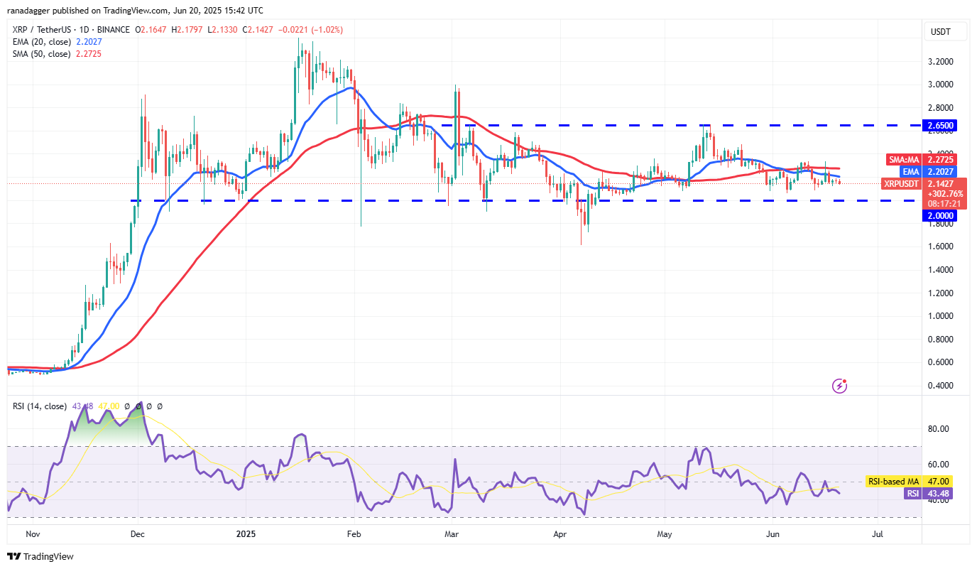 Buyers are trying to push XRP (XRP) above the 20-day SMA ($2.20), but the bears have held their ground.
