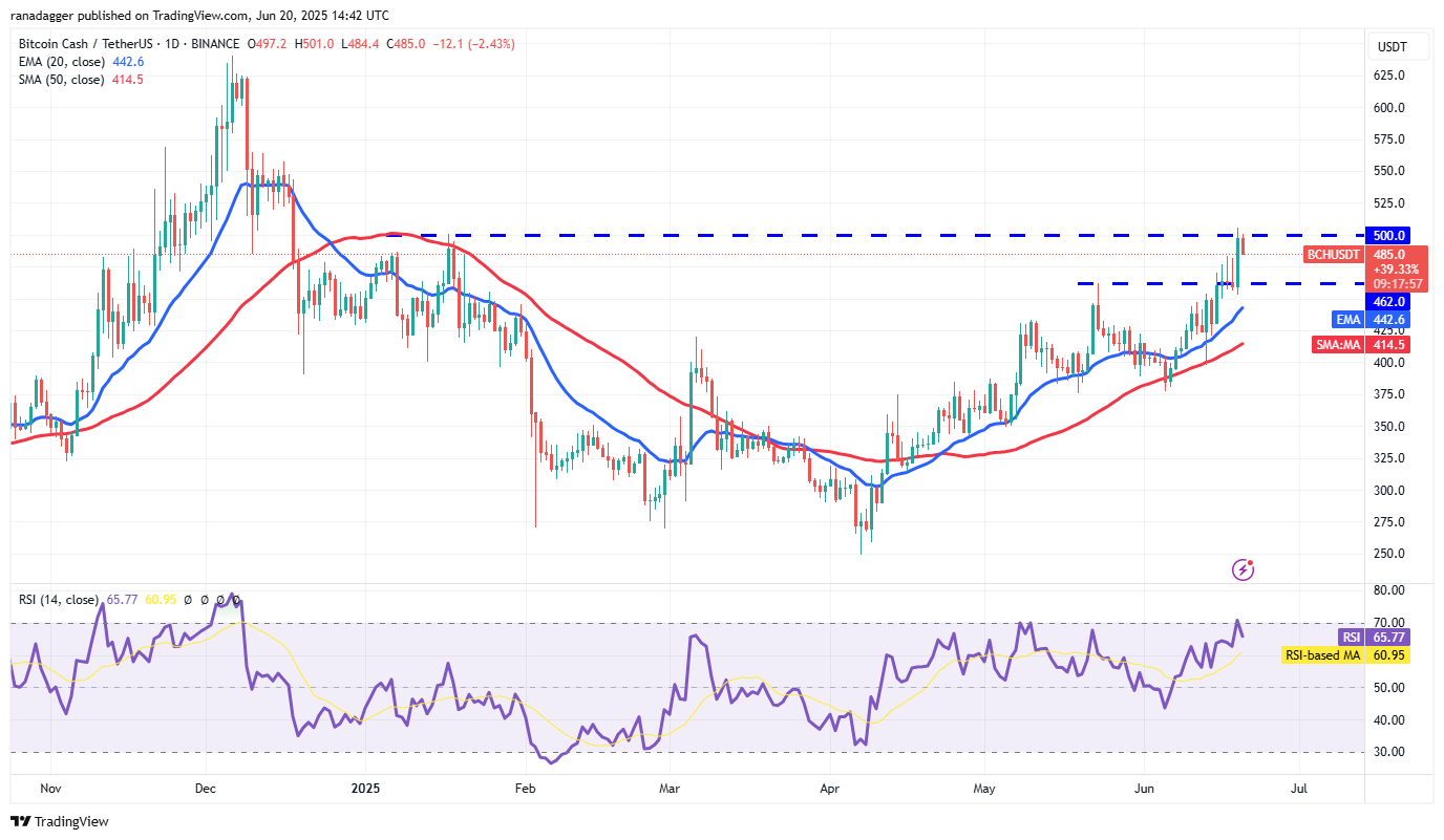 Bitcoin Cash (BCH) turned up from the $462 level on Thursday and reached the stiff overhead resistance of $500.