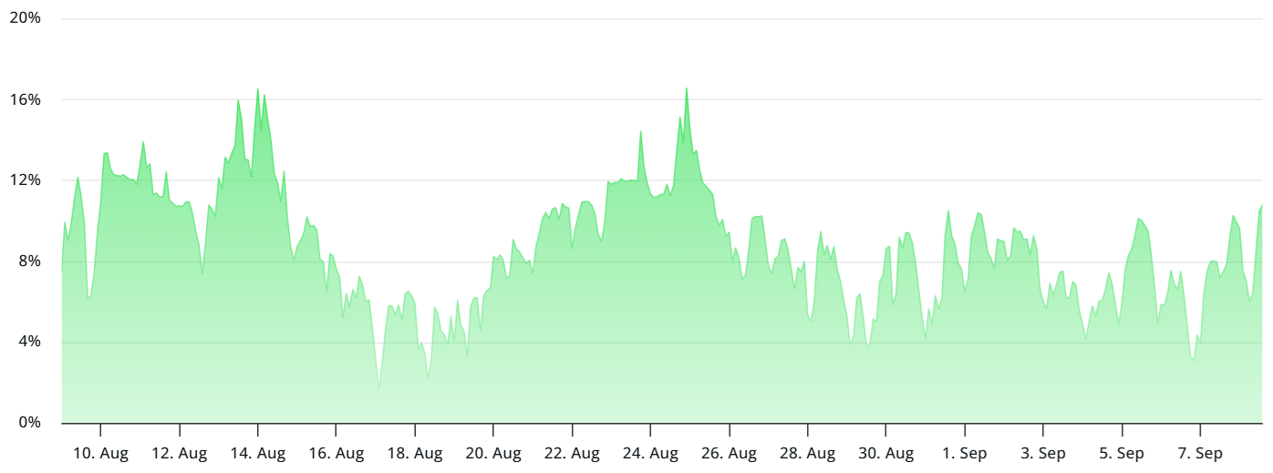 To determine whether bearish sentiment is confined to BTC options, it is necessary to look at the Bitcoin futures market. Under normal conditions, funding rates on perpetual contracts typically range from 6% to 12% to account for the cost of capital and exchange-related risks.