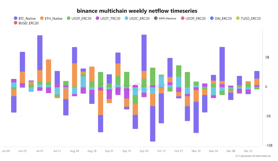 The week beginning Dec. 29 saw monthly highs in net inflows to largest global exchange Binance, with the BTC tally alone near $1.5 billion.