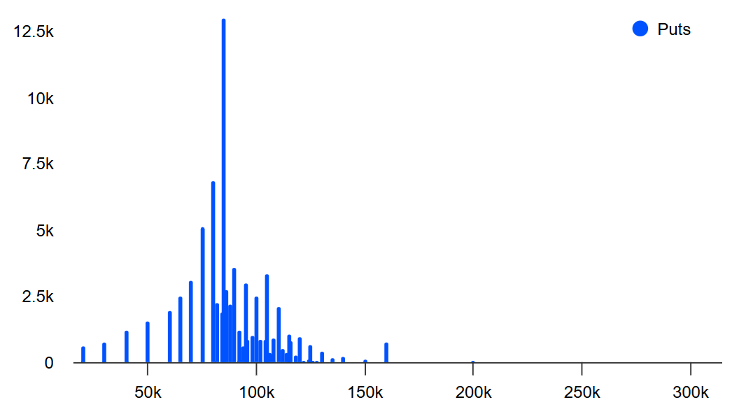 Between $86,000 and $90,000: The net result favors the put (sell) instruments by $2.4 billion.