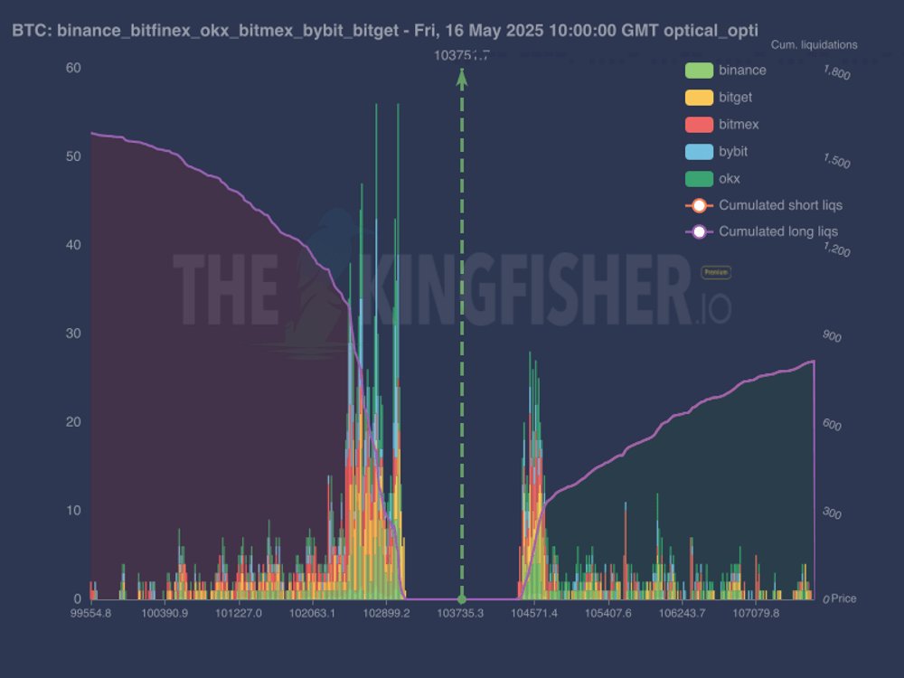 $BTC Liquidation Map showing a large cluster at $105K-$106K and a ton sitting between $99K-$103K.