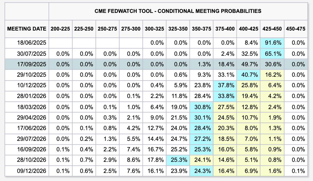 Data from CME Group’s FedWatch Tool put the Fed’s September meeting as the likely occasion to deliver the next cut.