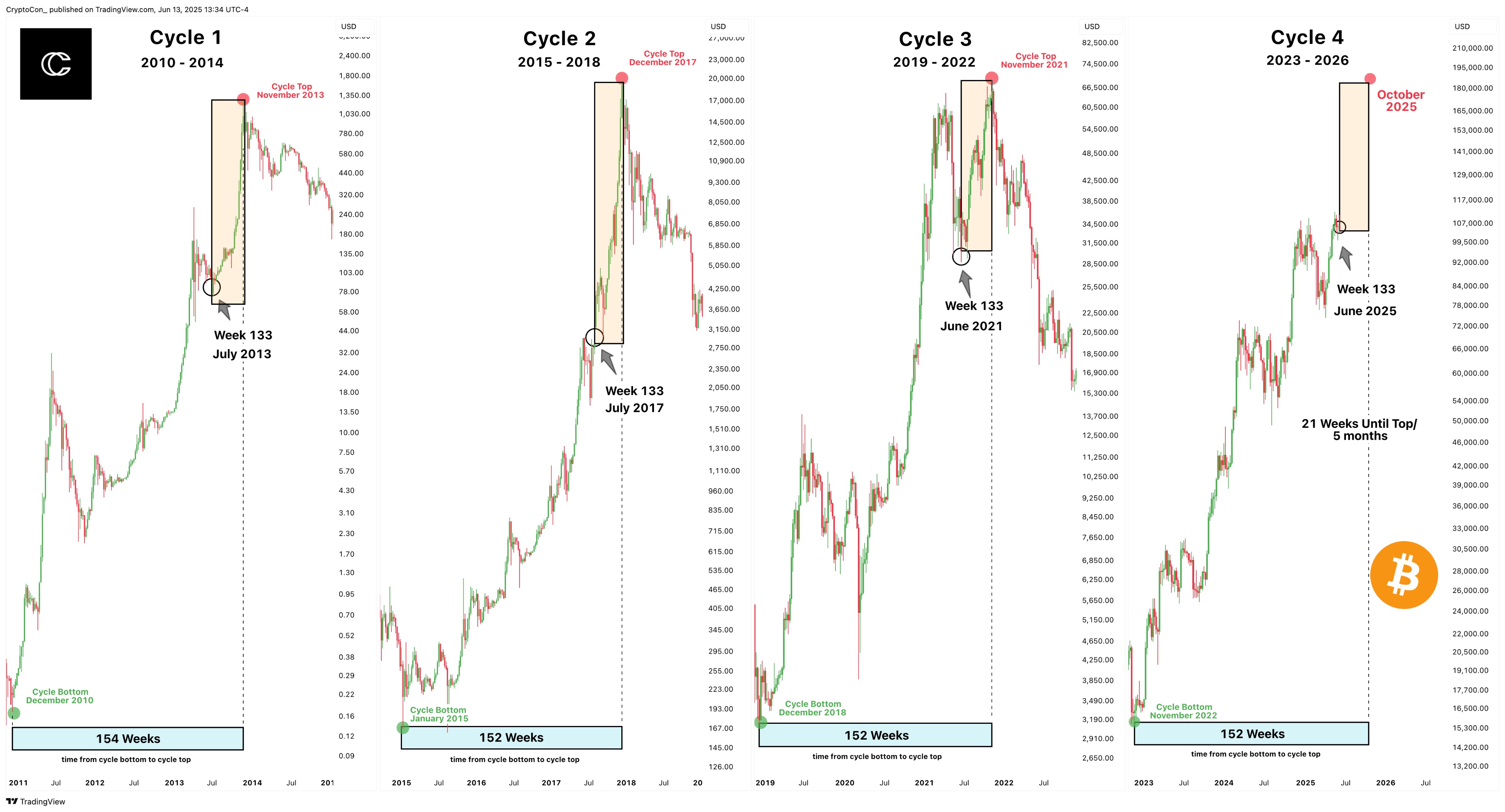 “Some people are under the impression that the cycle can extend into 2026 (year of the bear market) because of the slower price action,” analyst CryptoCon continued in his own X post on the topic.