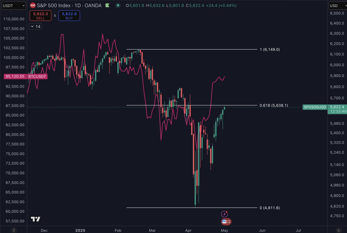 “Stocks trade at a key area here,” he wrote in ongoing X analysis.