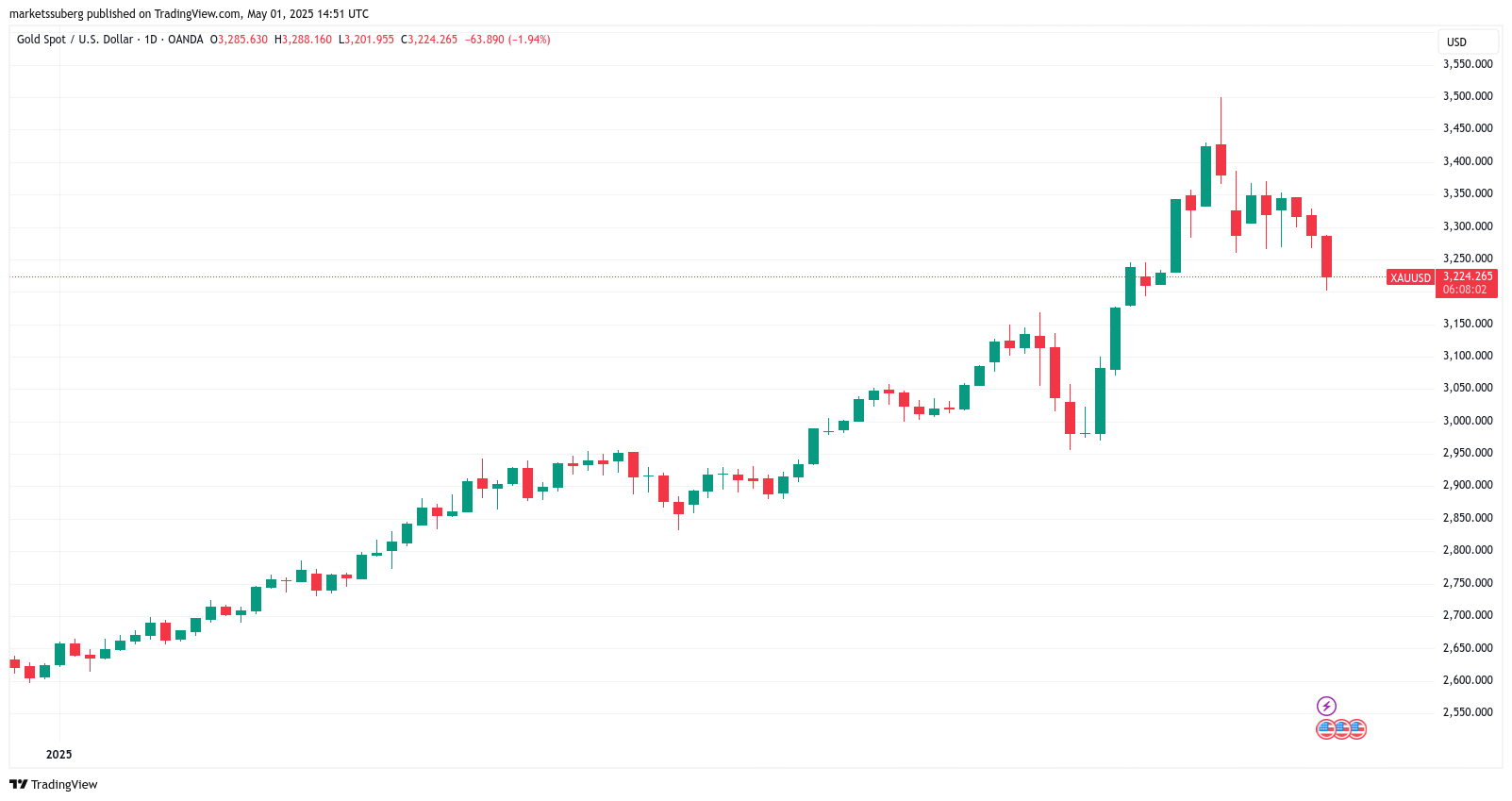 XAU/USD was down more than 8% versus its all-time highs seen in April, with oil also suffering.
