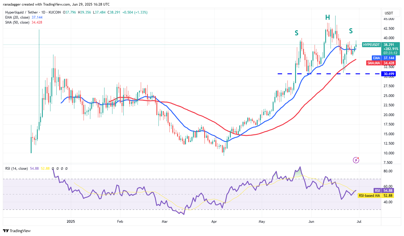 Hyperliquid (HYPE) slipped below the 20-day EMA ($37.14) on Thursday, but the bears could not sustain the lower levels. That shows buying on every minor dip.