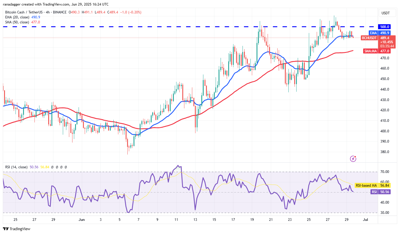 Bitcoin Cash (BCH) is facing selling at the $500 level, but a positive sign is that the bulls have not ceded much ground to the bears.