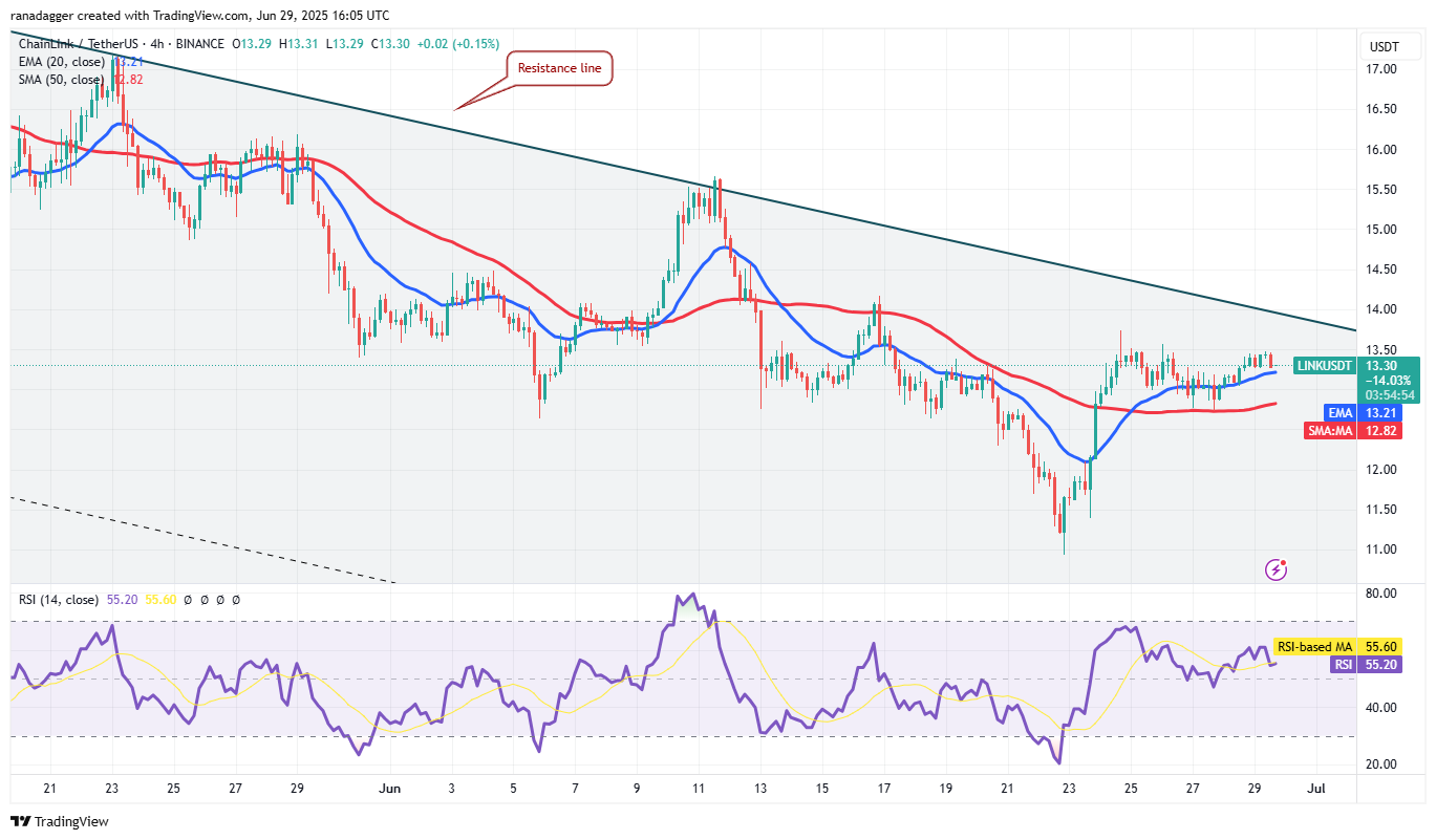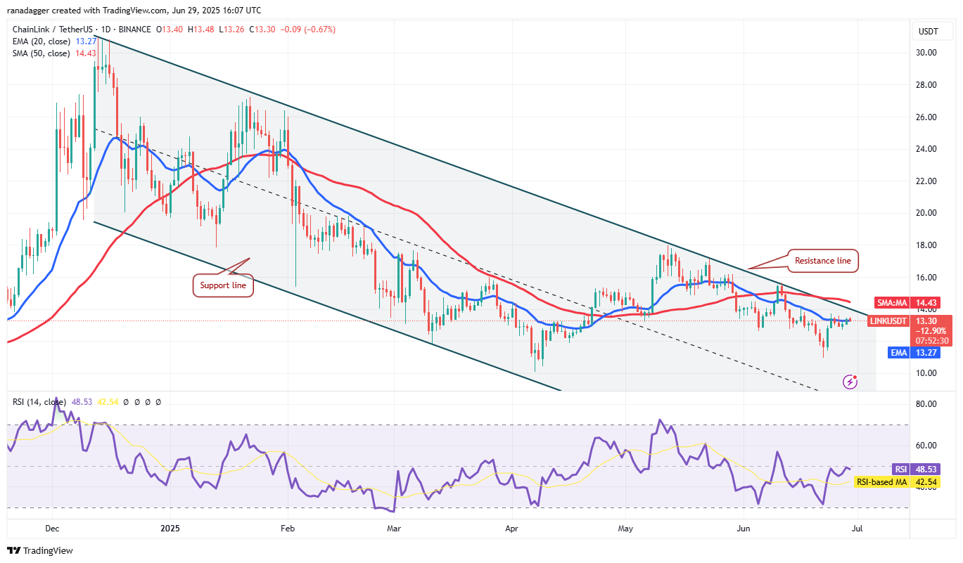 Chainlink (LINK) has been clinging to the 20-day EMA ($13.27) for the past few days, indicating that the bulls have maintained their pressure.
