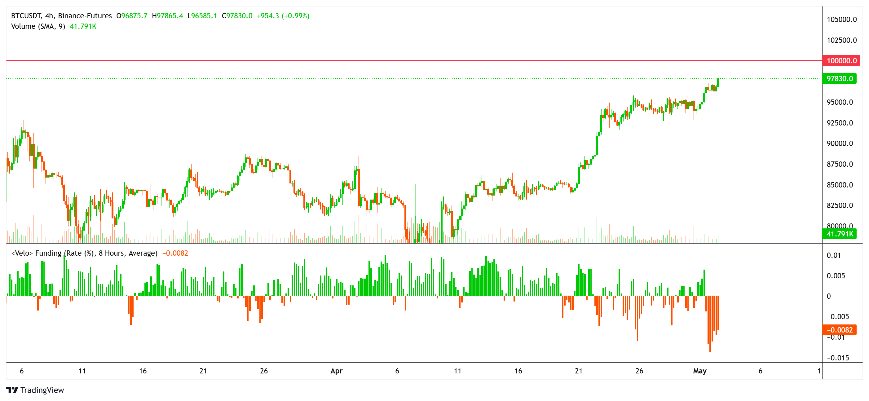 Bitcoin 4-hour chart and funding rate. Source: Velo.chart
